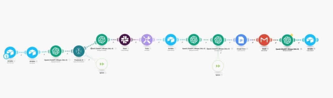 The workflow seamlessly integrated with Slack, Trello, Google Docs, and Airtable, enabling teams to collaborate efficiently. Automated reports and email notifications provided real-time performance insights, allowing for quick adjustments and strategy refinements.